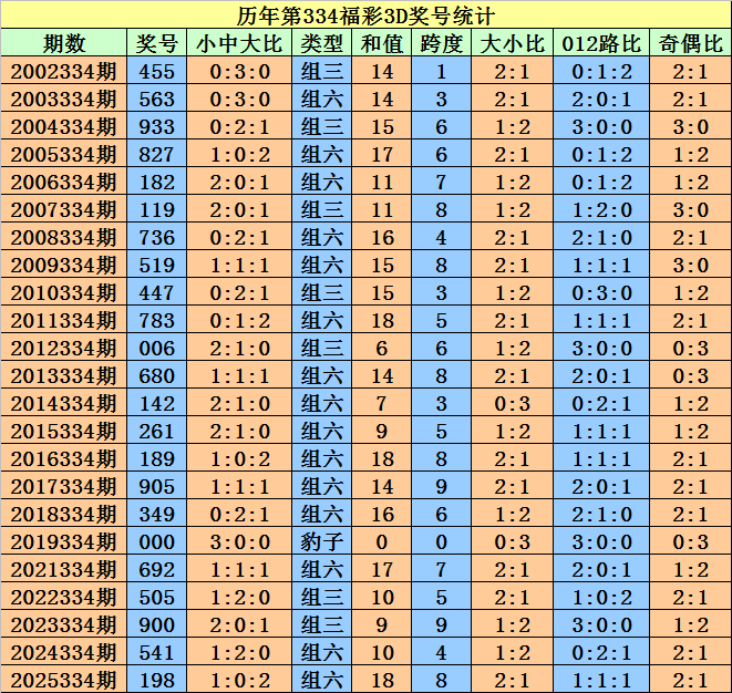 在积年同时开奖中,豹子开出1次,组三出现9次,组六开出12次,昨年同时开出组六,本年同时看好组六再出。