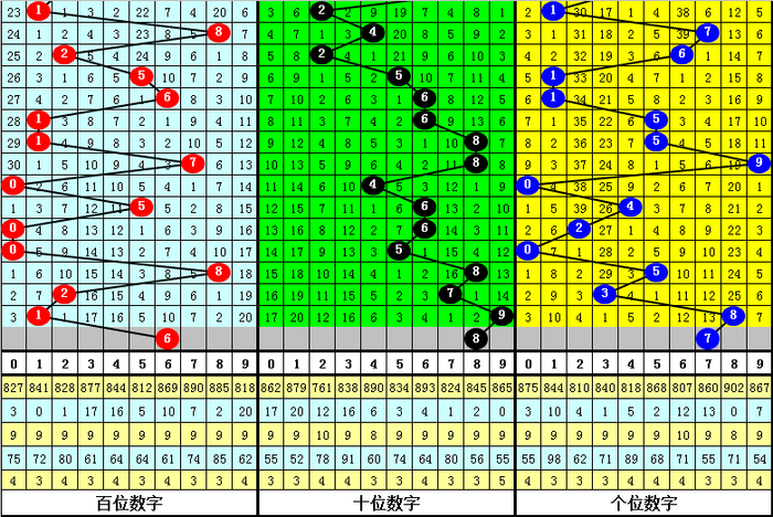 在历史同时号码中,组选0-9号码出现次数为:2、3出现4次,号码5、8出现5次,号码1出现6次,号码0、4、6出现7次,号码9出现8次,号码7出现13次,本期看好两码6、8出现。