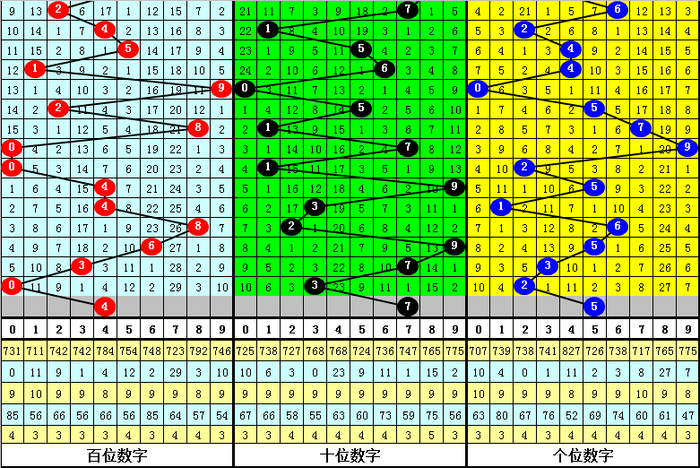 012路分析:最近10周星期二奖号012路总比例为11:10:9,012路号码轮空期数比为3:2:3,上周星期二奖号012路比为1:1:1,本周星期二刺目0路号码走冷,看好1路号码热出,参考012路比0:2:1。